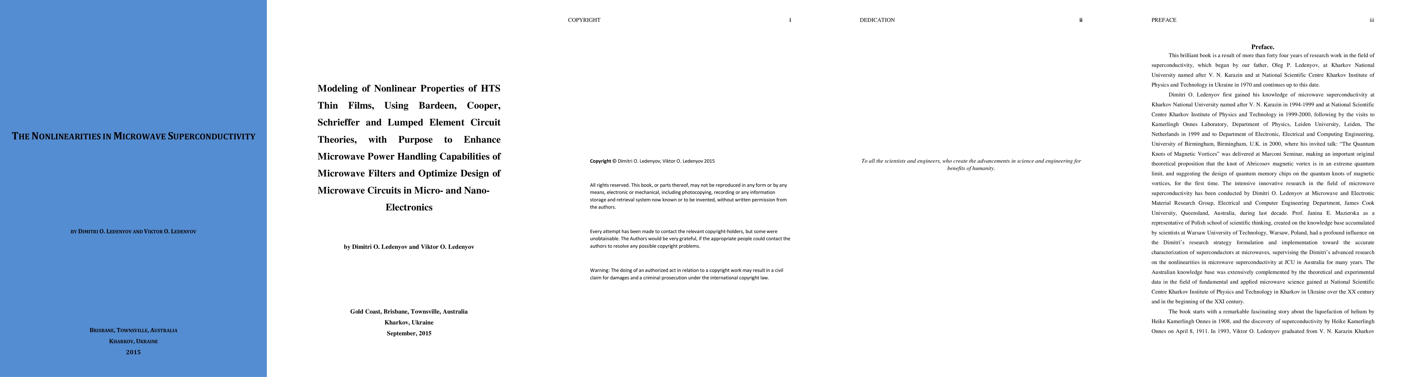The research is focused on the modeling of nonlinear properties of High Temperature Superconducting (HTS) thin films, using Bardeen, Cooper, Schrieffer and Lumped Element Circuit theories, with purpose to enhance microwave power handling capabilities of microwave filters and optimize design of microwave circuits in micro- and nano- electronics.