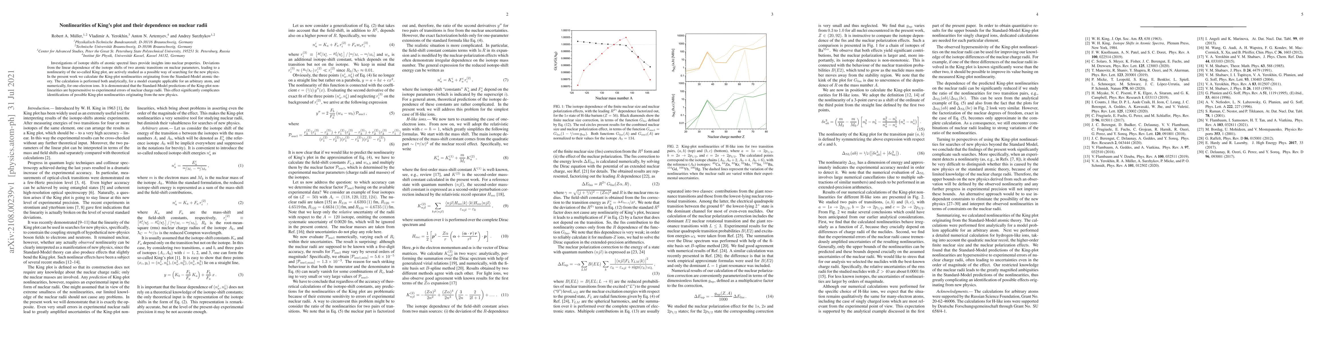 The study calculates King-plot nonlinearities from Standard-Model atomic theory, both analytically for a general atom and numerically for one-electron ions, considering field-shift dependencies on nuclear parameters including higher powers of nuclear radius.