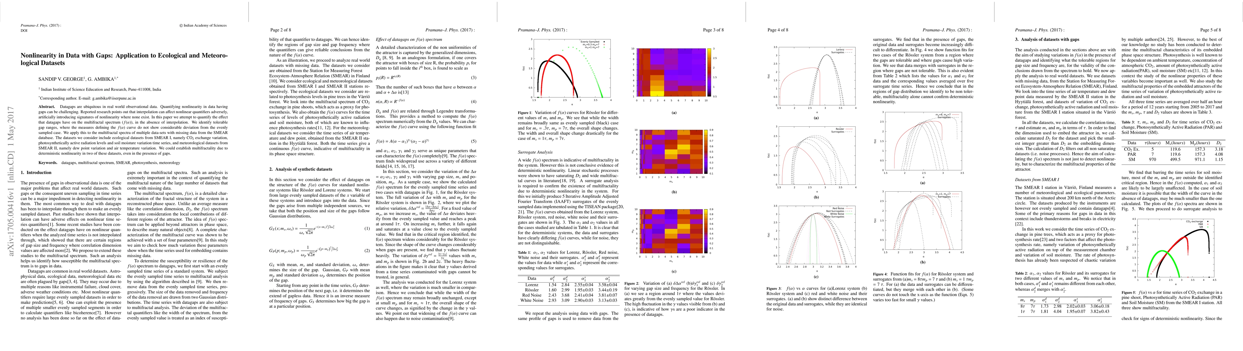 This paper investigates the impact of data gaps on quantifying nonlinearity in ecological and meteorological datasets without interpolation. It identifies tolerable gap ranges where the multifractal spectrum remains consistent with evenly sampled data, and applies this to several SMEAR database datasets, confirming multifractality in two despite gaps.