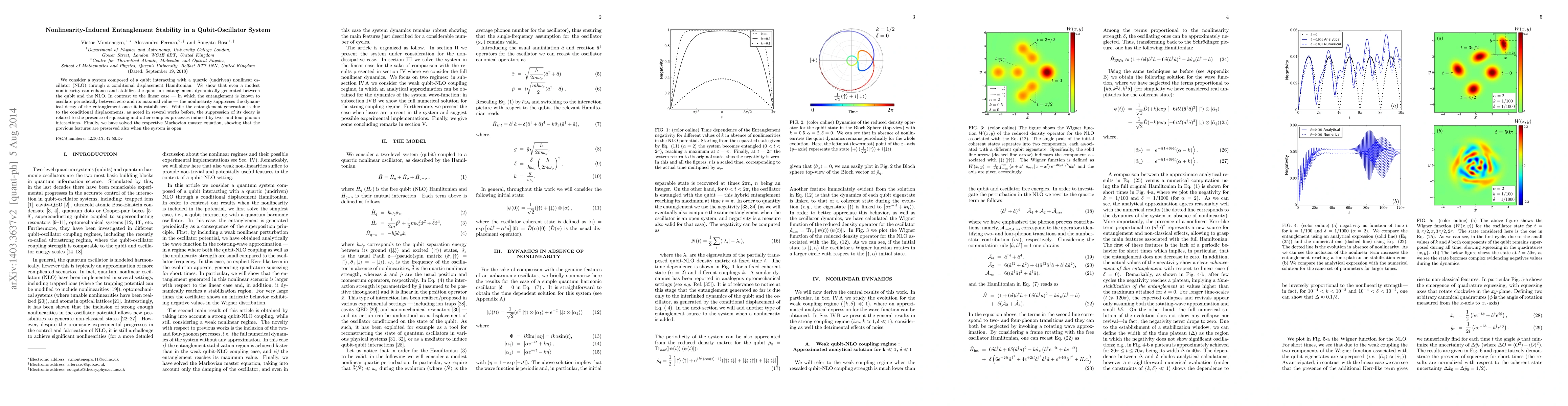 This paper investigates a qubit-oscillator system where a nonlinear oscillator's quartic potential enhances qubit-oscillator entanglement stability. The nonlinearity suppresses the decay of entanglement, maintaining it through complex processes like squeezing and multi-phonon interactions, even in an open quantum system.