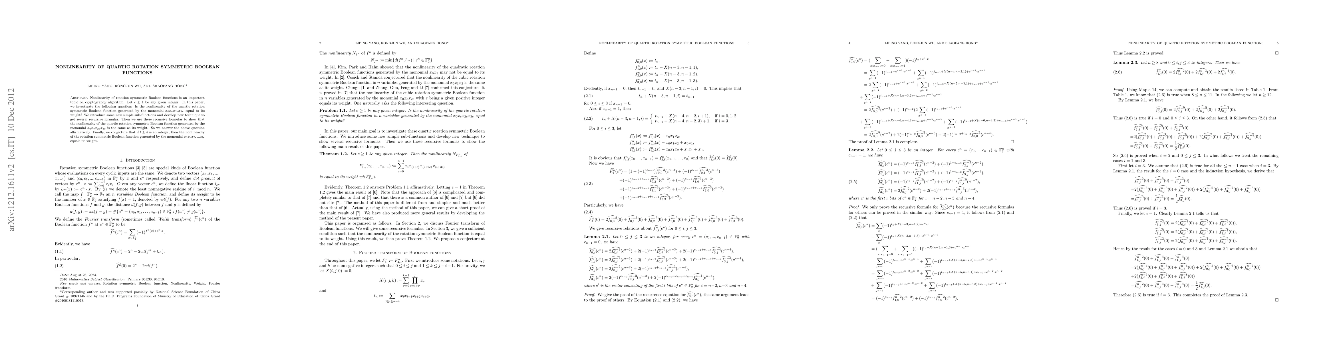 This paper investigates the nonlinearity of quartic rotation symmetric Boolean functions, specifically determining if the nonlinearity of a function generated by the monomial $x_0x_ex_{2e}x_{3e}$ equals its weight. The authors develop new recursive formulas to affirmatively answer this question and conjecture that a similar relationship holds for higher-order rotation symmetric Boolean functions.