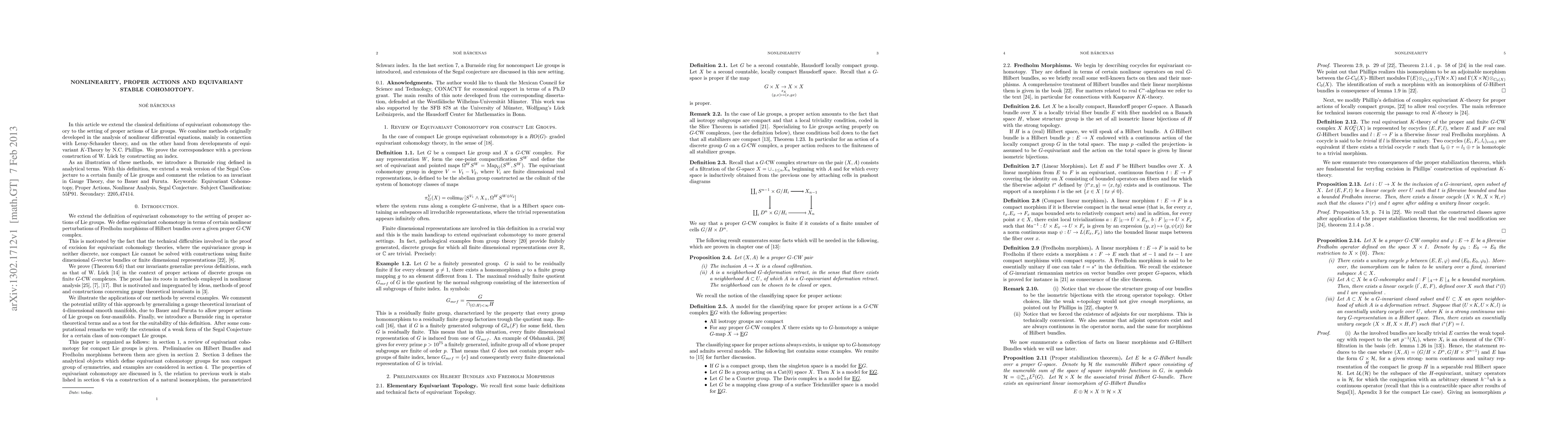 The research extends classical equivariant cohomotopy theory to proper actions of Lie groups, combining methods from nonlinear differential equations and equivariant K-theory.