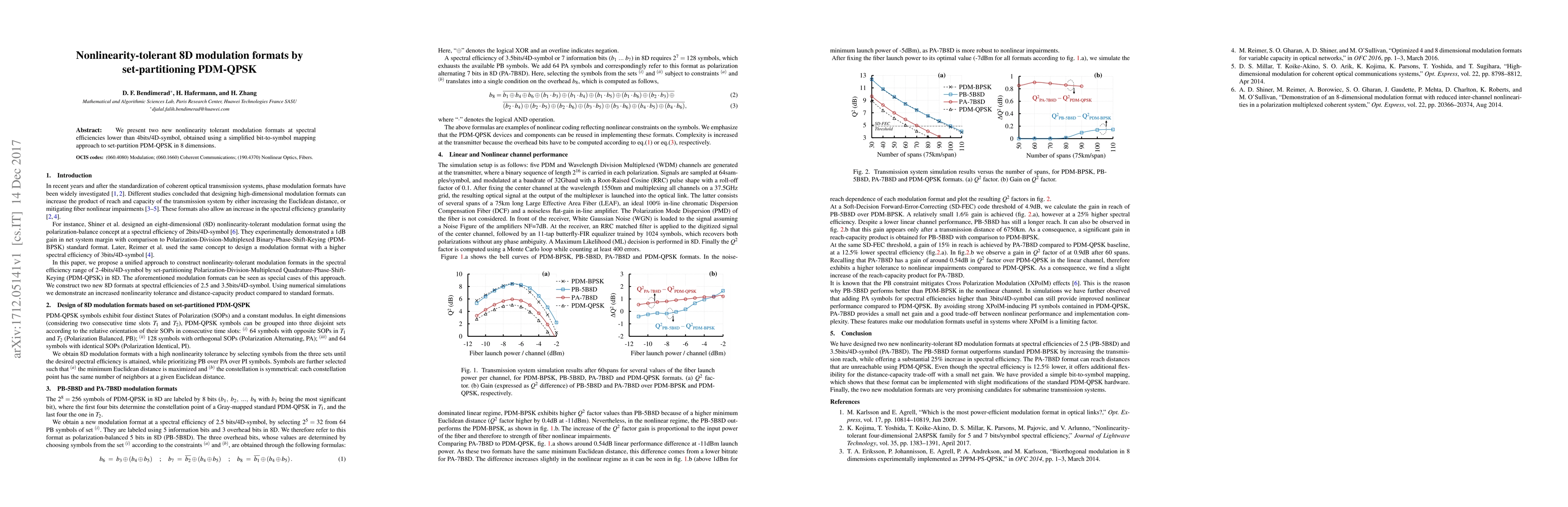 We present two new nonlinearity tolerant modulation formats at spectral efficiencies lower than 4bits/4D-symbol, obtained using a simplified bit-to-symbol mapping approach to set-partition PDM-QPSK in 8 dimensions.