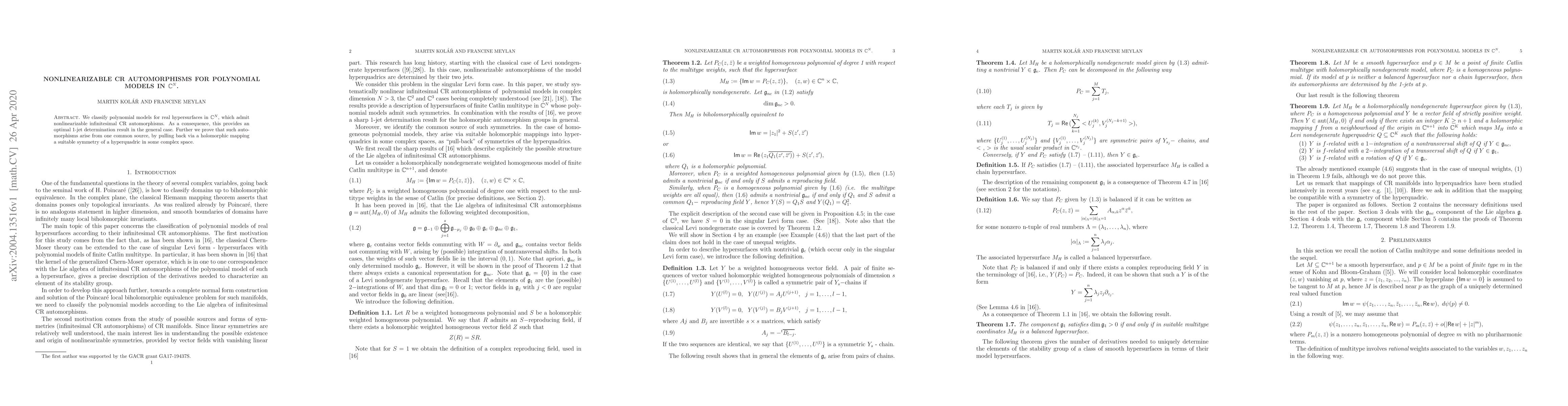 This paper classifies polynomial models for real hypersurfaces in complex space that allow for nonlinearizable infinitesimal CR automorphisms, ultimately proving these automorphisms originate from a single common source via a holomorphic mapping of hyperquadric symmetries. The study also achieves an optimal 1-jet determination result for these models.