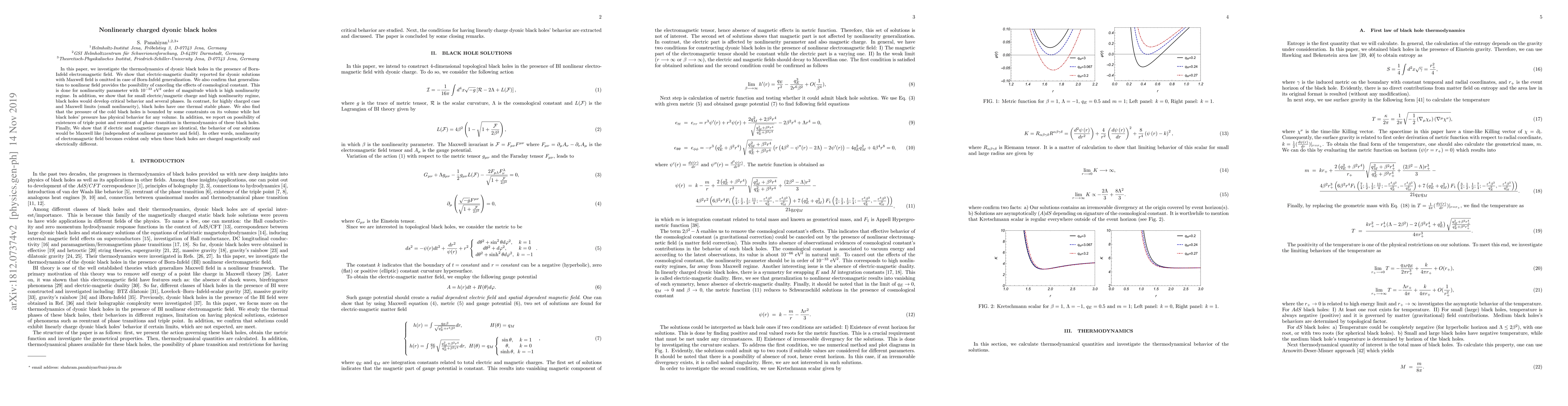 This paper explores the thermodynamics of dyonic black holes under Born-Infeld electromagnetic fields, demonstrating that electric-magnetic duality is absent in this nonlinear regime compared to Maxwell fields. It reveals phase transitions and critical behavior under high nonlinearity, contrasting with a single stable phase for small charges or Maxwell limits.