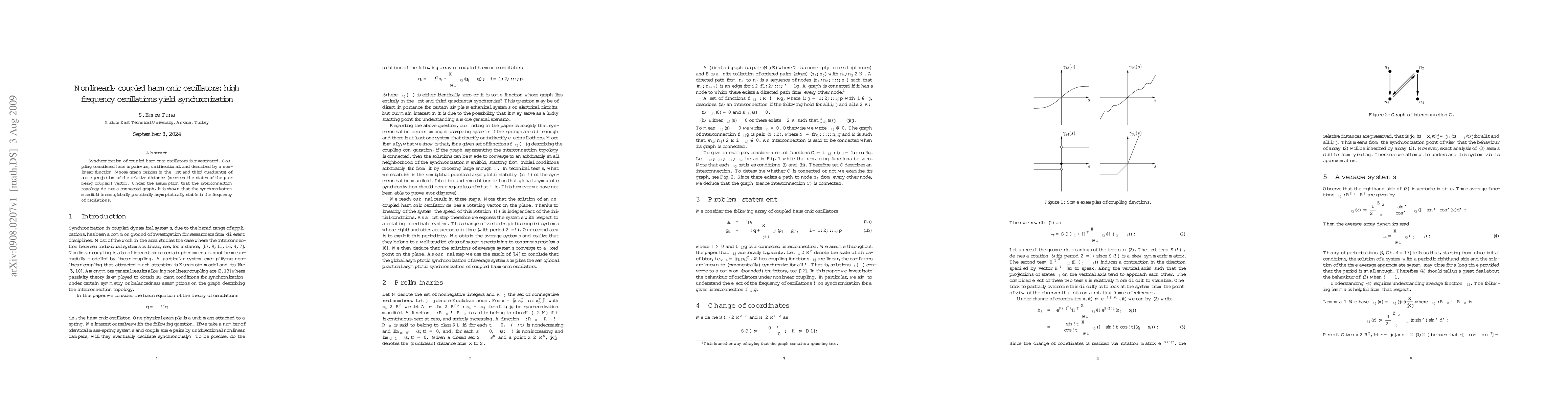 Synchronization of high-frequency coupled harmonic oscillators is achieved through a nonlinear coupling mechanism, which leads to stable synchronization in the frequency of oscillations.