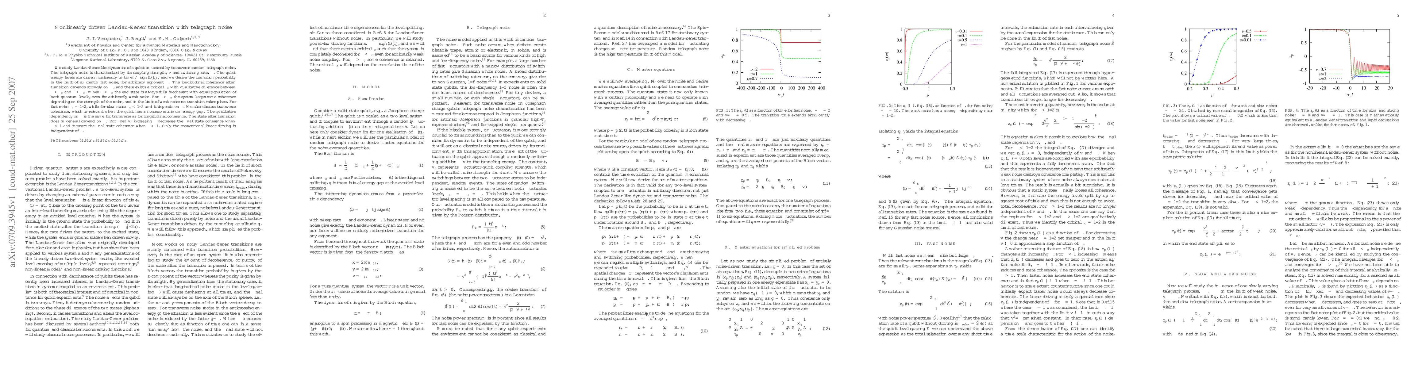 This paper investigates the Landau-Zener dynamics of a qubit under transverse telegraph noise, deriving transition probabilities for nonlinearly driven energy levels. The longitudinal coherence after transition depends critically on the exponent $\nu$ of the driving function, with a threshold $\nu_c$ distinguishing coherent from incoherent states.