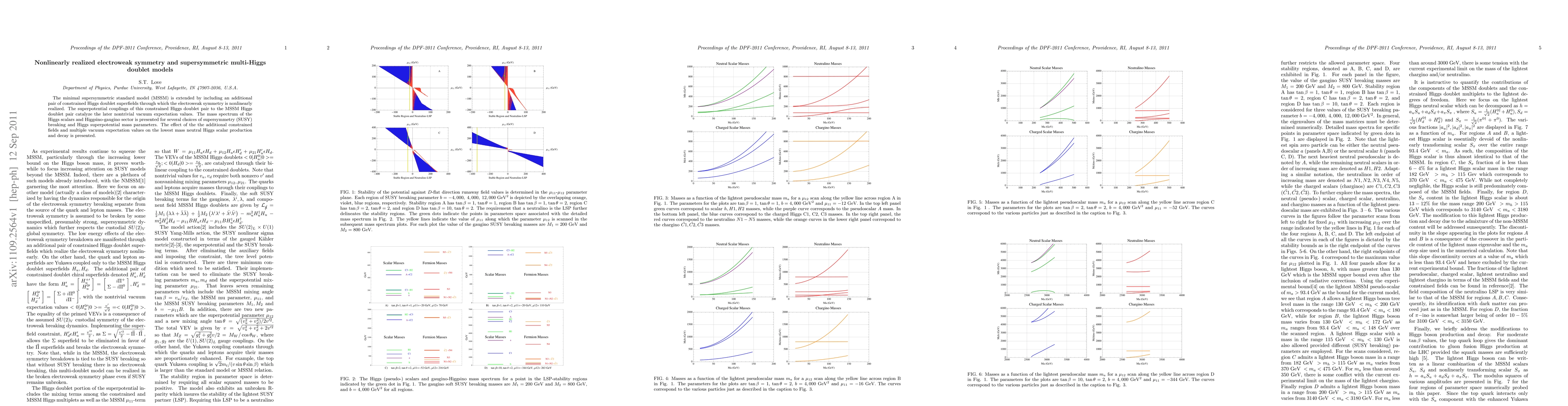 The paper extends the minimal supersymmetric standard model by introducing an extra pair of constrained Higgs doublets, realizing electroweak symmetry nonlinearly, and analyzes the resulting mass spectrum and implications for neutral Higgs production and decay. Various supersymmetry breaking and Higgs mass parameters are considered to explore the model's effects.