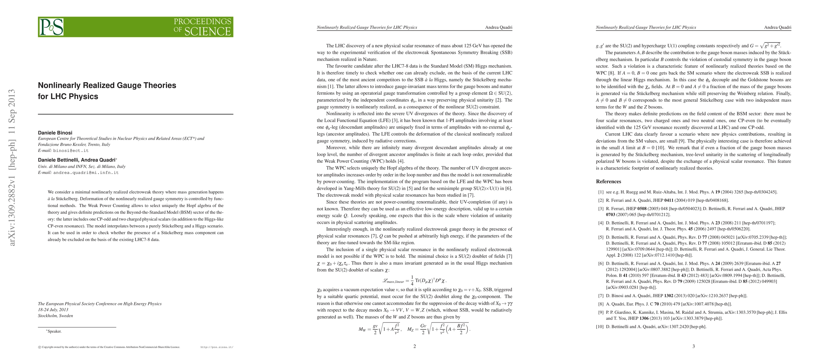 We consider a minimal nonlinearly realized electroweak theory where mass generation happens \`a la Stueckelberg. Deformation of the nonlinearly realized gauge symmetry is controlled by functional methods. The Weak Power Counting allows to select uniquely the Hopf algebra of the theory and gives definite predictions on the Beyond-the-Standard Model (BSM) sector of the theory: the latter includes one CP-odd and two charged physical scalars (in addition to the Higgs-like CP-even resonance). The model interpolates between a purely Stueckelberg and a Higgs scenario. It can be used in order to check whether the presence of a Stueckelberg mass component can already be excluded on the basis of the existing LHC7-8 data.