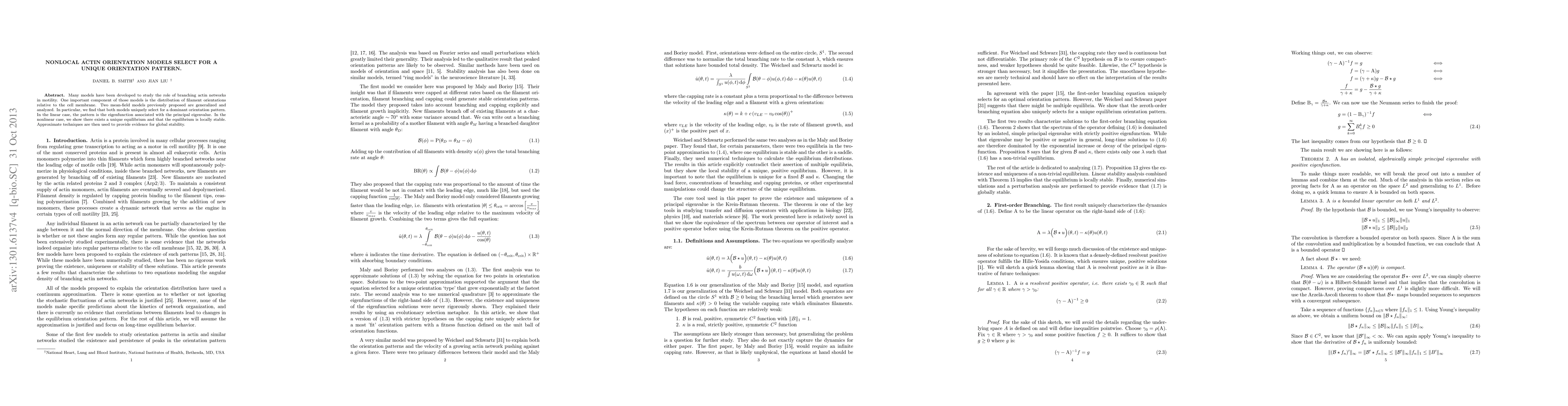 Many models have been developed to study the role of branching actin networks in motility. One important component of those models is the distribution of filament orientations relative to the cell membrane. Two mean-field models previously proposed are generalized and analyzed. In particular, we find that both models uniquely select for a dominant orientation pattern. In the linear case, the pattern is the eigenfunction associated with the principal eigenvalue. In the nonlinear case, we show there exists a unique equilibrium and that the equilibrium is locally stable. Approximate techniques are then used to provide evidence for global stability.