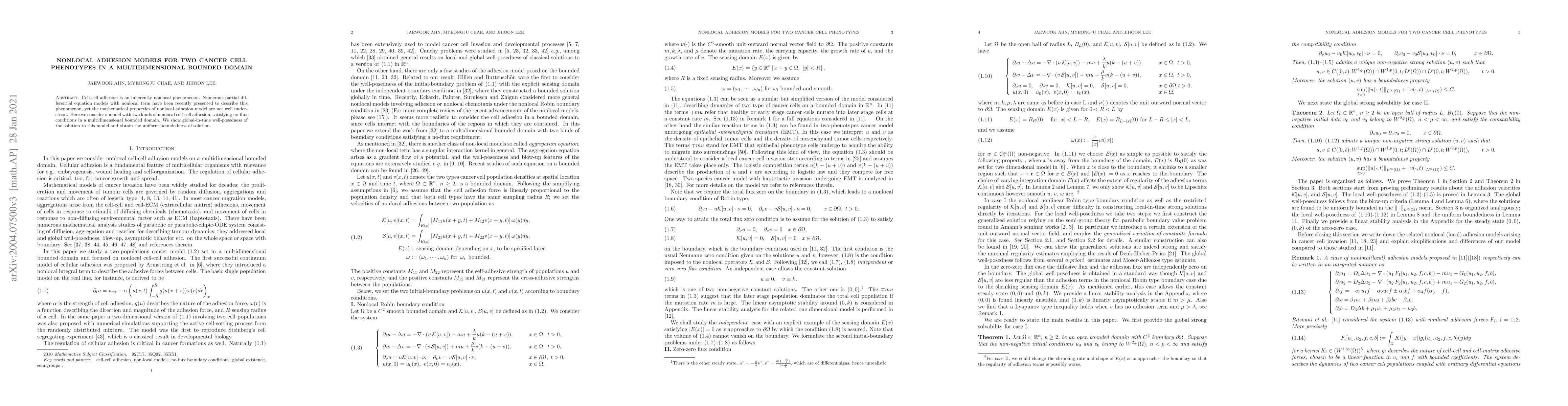 This paper develops nonlocal adhesion models for two distinct cancer cell phenotypes, demonstrating global-in-time well-posedness and uniform boundedness of solutions within a multidimensional bounded domain, enhancing the understanding of nonlocal cell-cell adhesion.