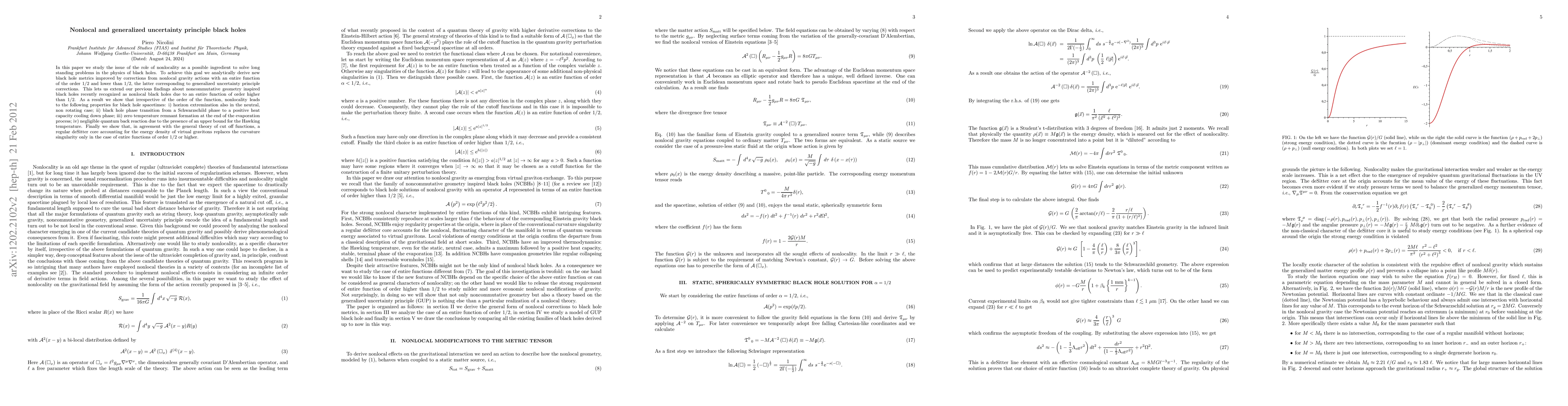 In this paper we study the issue of the role of nonlocality as a possible ingredient to solve long standing problems in the physics of black holes. To achieve this goal we analytically derive new black hole metrics improved by corrections from nonlocal gravity actions with an entire function of the order 1/2 and lower than 1/2, the latter corresponding to generalized uncertainty principle corrections. This lets us extend our previous findings about noncommutative geometry inspired black holes recently recognized as nonlocal black holes due to an entire function of order higher than 1/2. As a result we show that irrespective of the order of the function, nonlocality leads to the following properties for black hole spacetimes: i) horizon extremization also in the neutral, non rotating case; ii) black hole phase transition from a Schwarzschild phase to a positive heat capacity cooling down phase; iii) zero temperature remnant formation at the end of the evaporation process; iv) negligible quantum back reaction due to the presence of an upper bound for the Hawking temperature. Finally we show that, in agreement with the general theory of cut off functions, a regular deSitter core accounting for the energy density of virtual gravitons replaces the curvature singularity only in the case of entire functions of order 1/2 or higher.