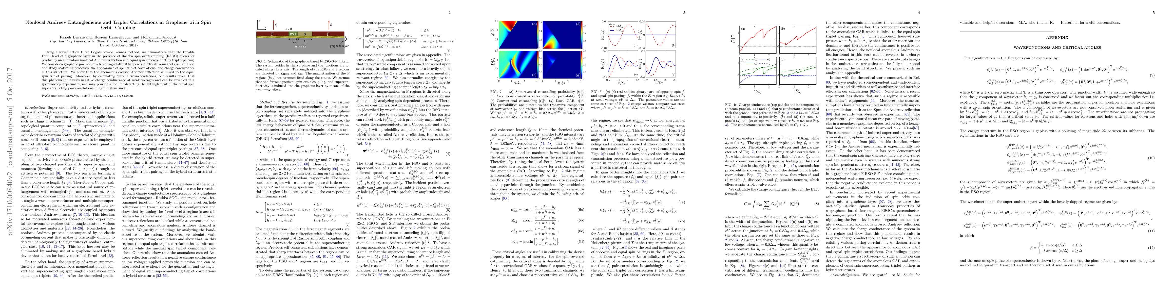 This paper demonstrates that graphene with Rashba spin-orbit coupling can exhibit anomalous nonlocal Andreev reflection and equal spin superconducting triplet pairing. The study reveals negative charge conductance at low voltages and suggests this phenomenon can be detected via spectroscopy, potentially serving as a tool for identifying entanglement in hybrid structures.