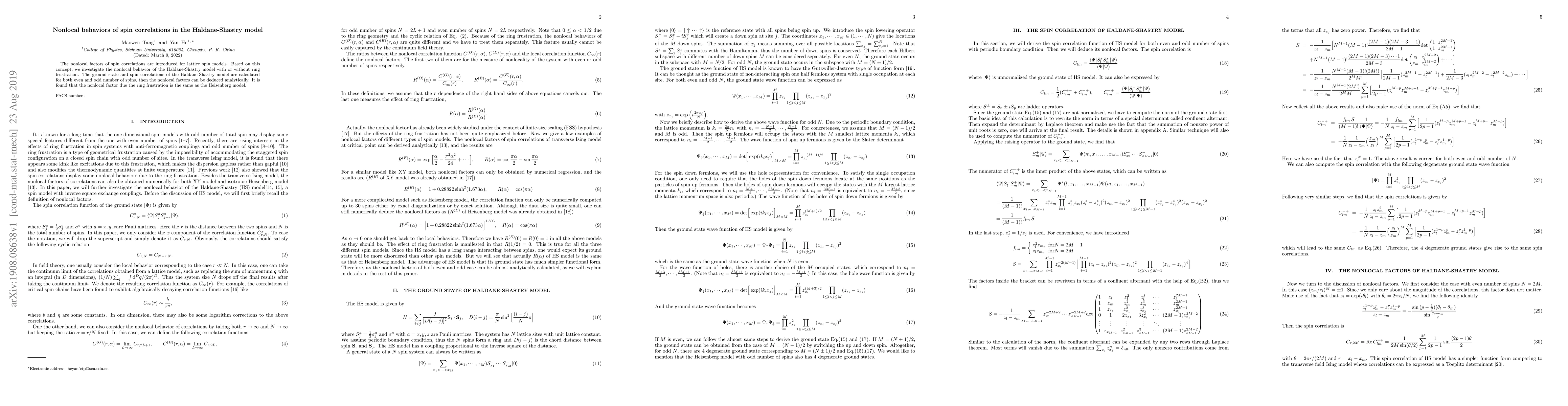 Summary: This study introduces nonlocal factors for spin correlations in lattice spin models, applying this concept to the Haldane-Shastry model with and without ring frustration. Analytical calculations reveal that the nonlocal factor due to ring frustration in the Haldane-Shastry model matches that of the Heisenberg model.