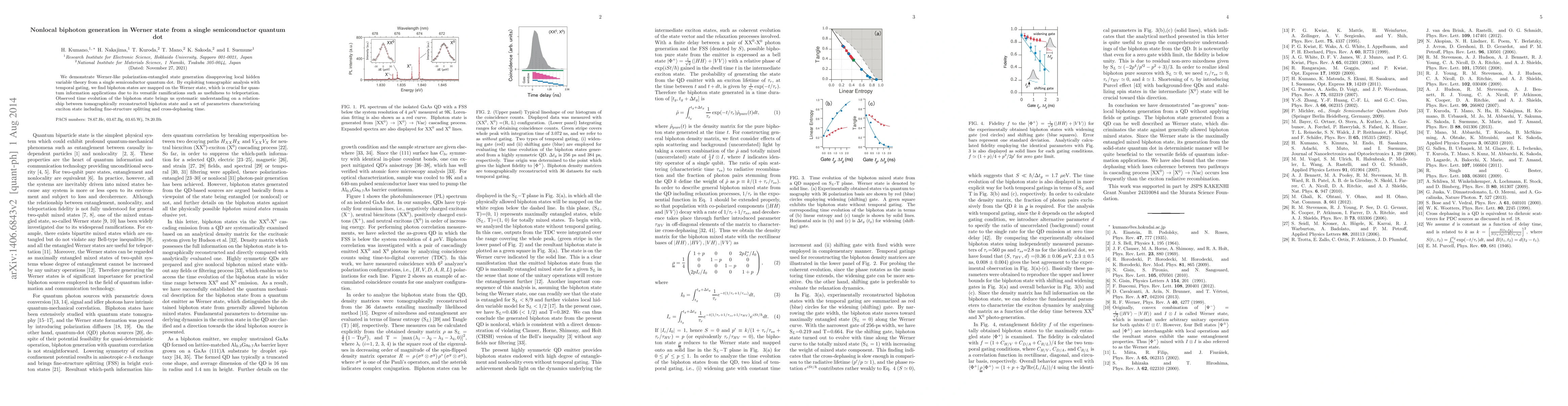 This paper demonstrates the generation of Werner-like polarization-entangled biphoton states from a single semiconductor quantum dot, disproving local hidden variable theory. The study uses tomographic analysis with temporal gating to map biphoton states onto the Werner state, crucial for quantum information applications like teleportation, and investigates the time evolution of these states to understand their relationship with exciton parameters.