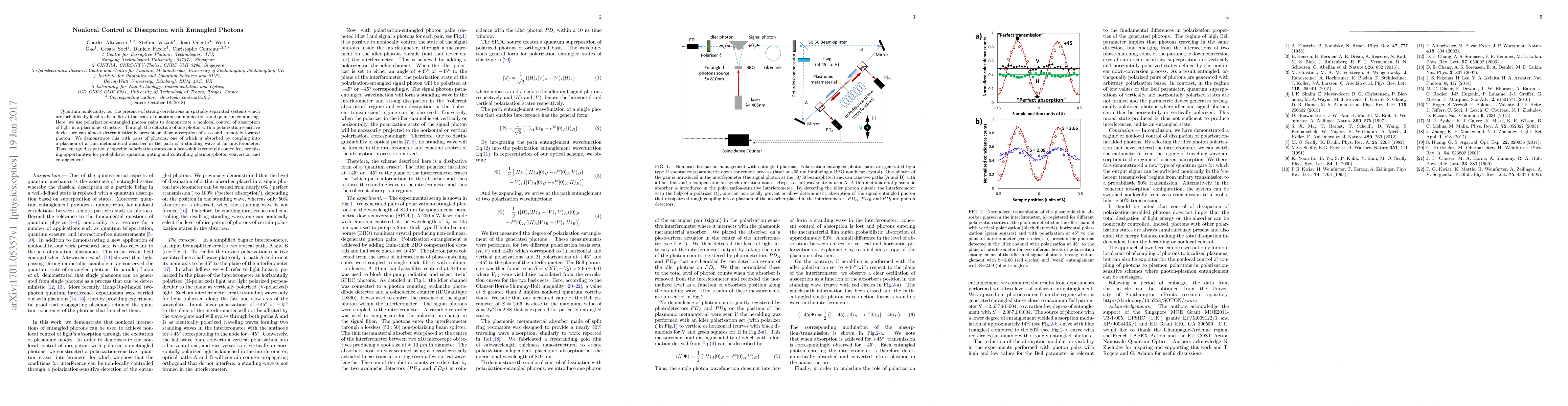 Researchers demonstrate nonlocal control of light absorption in a plasmonic structure using entangled photons, enabling remote control of energy dissipation.