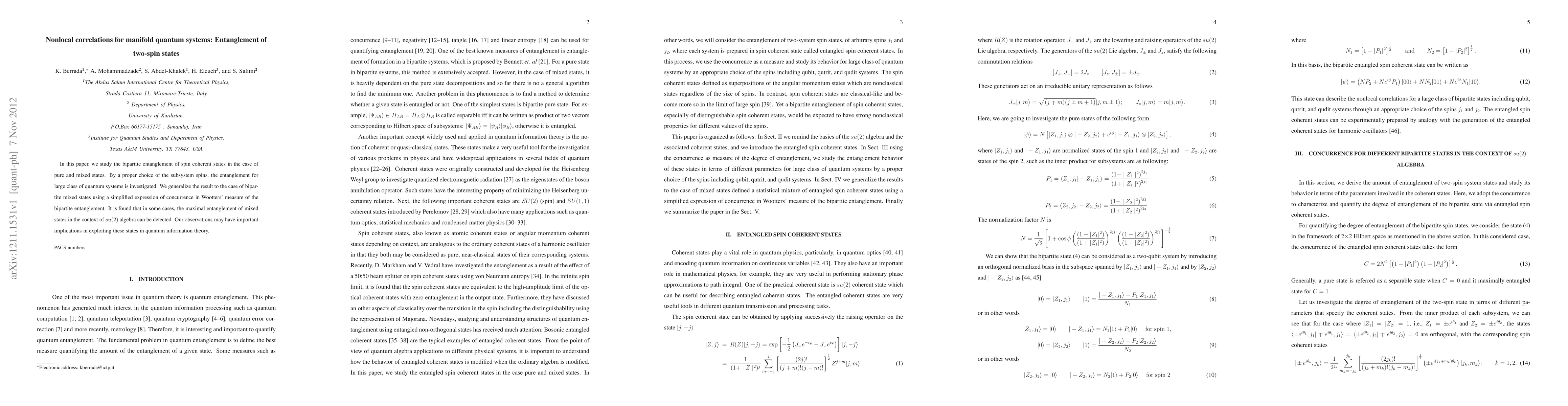 In this paper, we study the bipartite entanglement of spin coherent states in the case of pure and mixed states. By a proper choice of the subsystem spins, the entanglement for large class of quantum systems is investigated. We generalize the result to the case of bipartite mixed states using a simplified expression of concurrence in Wootters' measure of the bipartite entanglement. It is found that in some cases, the maximal entanglement of mixed states in the context of $su(2)$ algebra can be detected. Our observations may have important implications in exploiting these states in quantum information theory.