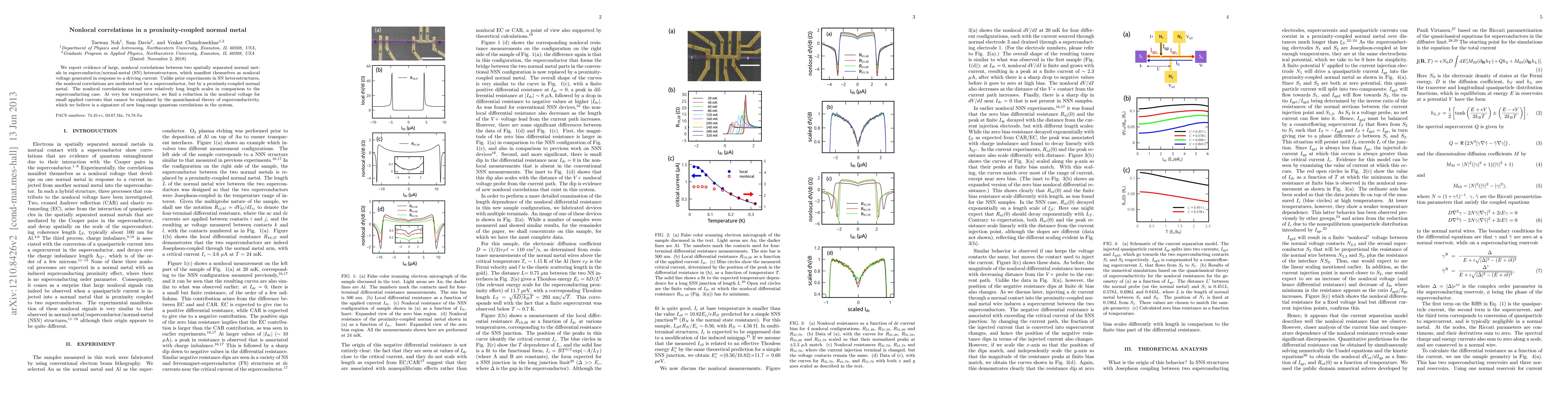 A new theoretical model was proposed to describe the nonlocal differential resistance in proximity-coupled normal metals, which has been shown to be consistent with experimental measurements.