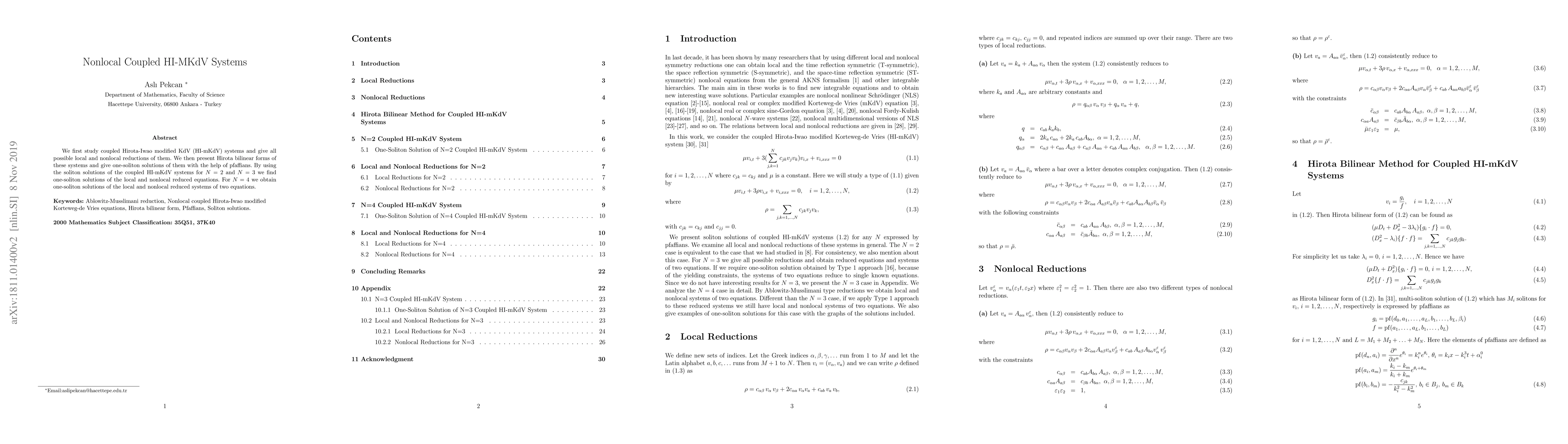 This paper investigates nonlocal coupled HI-mKdV systems, finding soliton solutions for local and nonlocal reduced equations using Hirota bilinear forms and pfaffians.