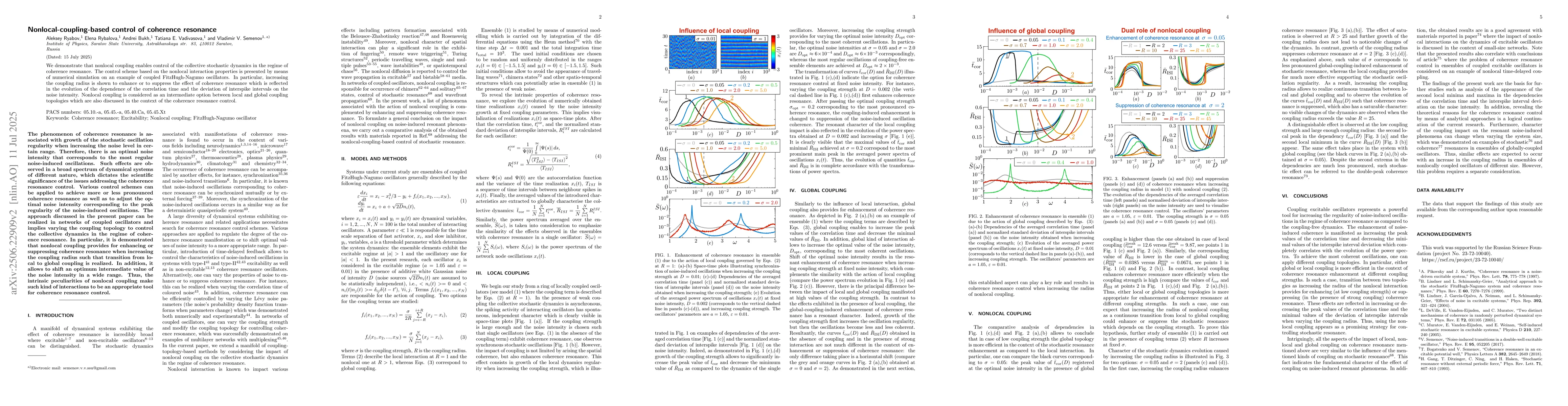 We demonstrate that nonlocal coupling enables control of the collective stochastic dynamics in the regime of coherence resonance. The control scheme based on the nonlocal interaction properties is presented by means of numerical simulation on an example of coupled FitzHugh-Nagumo oscillators. In particular, increasing the coupling radius is shown to enhance or to suppress the effect of coherence resonance which is reflected in the evolution of the dependence of the correlation time and the deviation of interspike intervals on the noise intensity. Nonlocal coupling is considered as an intermediate option between local and global coupling topologies which are also discussed in the context of the coherence resonance control.