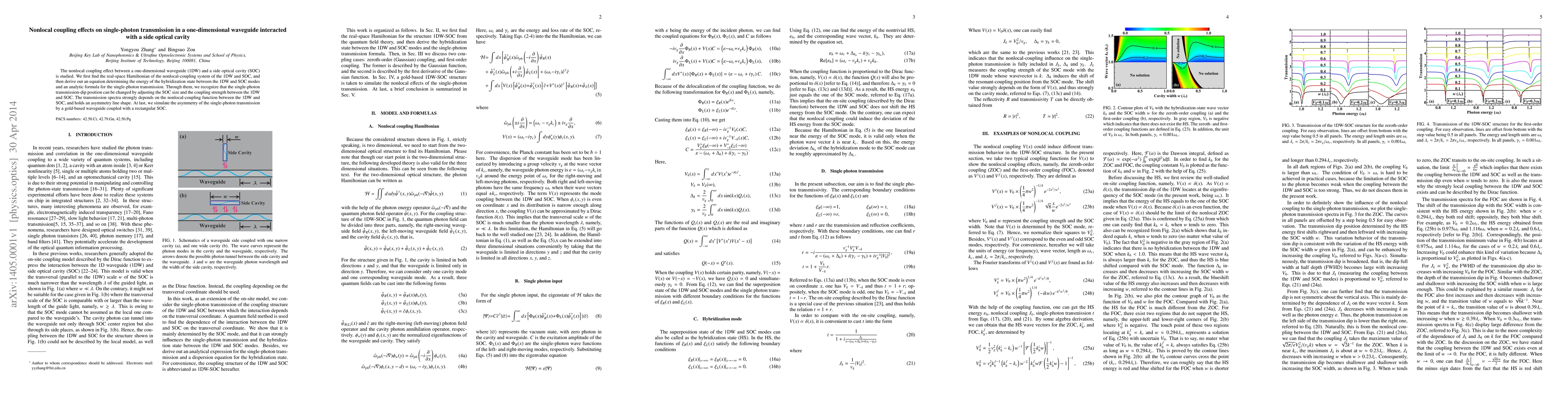 This paper investigates the nonlocal coupling effects between a one-dimensional waveguide and a side optical cavity, deriving an equation for the energy of the hybrid state and an analytic formula for single-photon transmission. The study finds that the transmission-dip position can be altered by adjusting the cavity size and coupling strength, resulting in a strongly dependent and asymmetrical transmission spectrum.