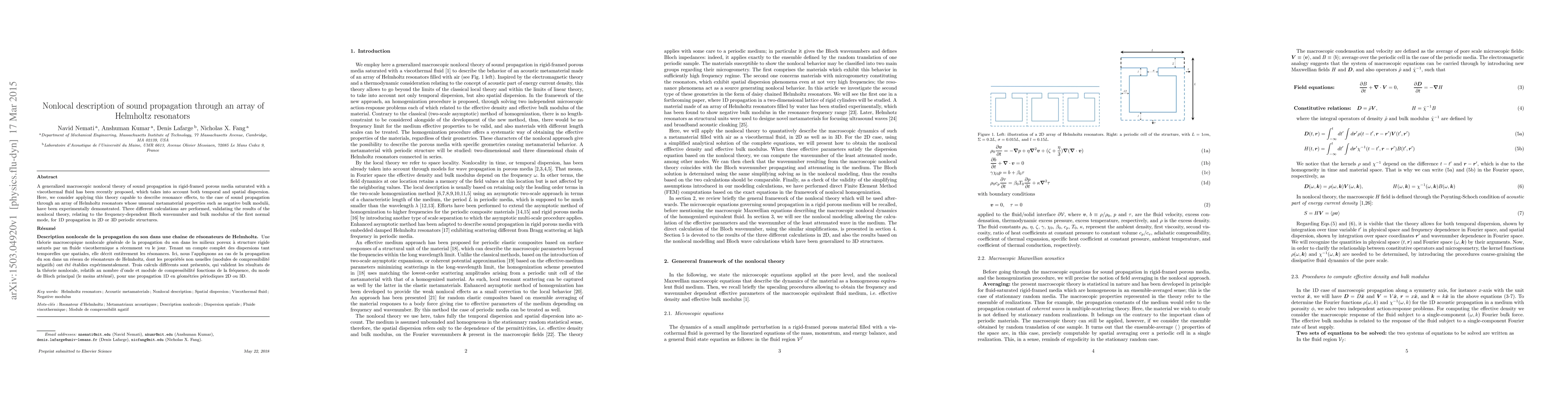 This work extends previous research by applying nonlocal theory to Helmholtz resonator arrays, validating results with FEM simulations, and demonstrating the importance of spatial dispersion in metamaterial behavior.