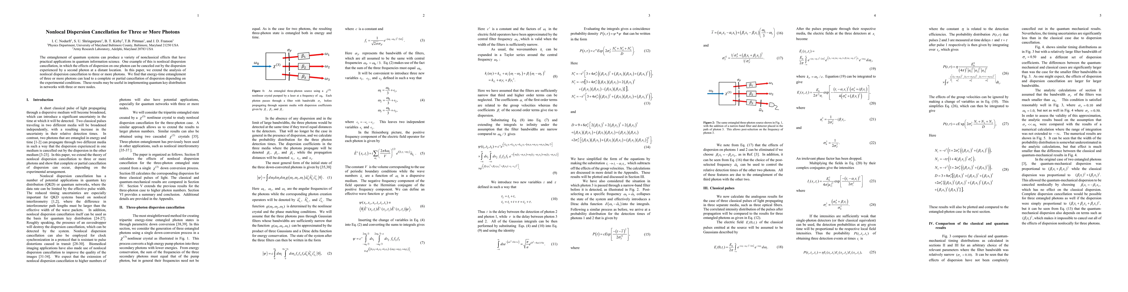 The paper presents a detailed mathematical analysis of nonlocal dispersion cancellation for three or more entangled photons, extending previous work on two-photon systems.