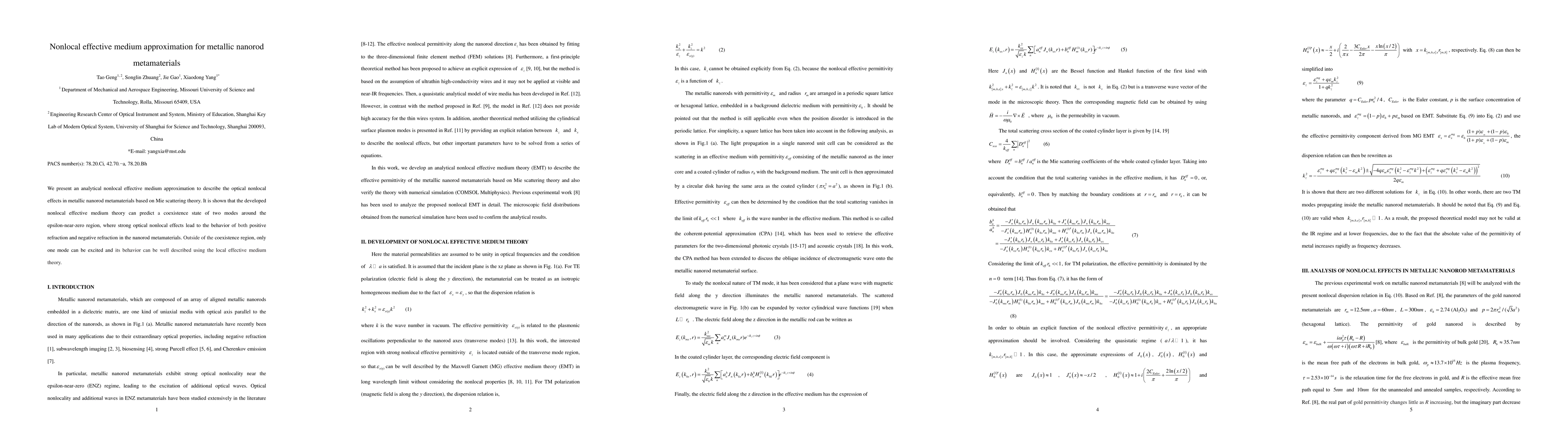 We present an analytical nonlocal effective medium approximation to describe the optical nonlocal effects in metallic nanorod metamaterials based on Mie scattering theory. It is shown that the developed nonlocal effective medium theory can predict a coexistence state of two modes around the epsilon-near-zero region, where strong optical nonlocal effects lead to the behavior of both positive refraction and negative refraction in the nanorod metamaterials. Outside of the coexistence region, only one mode can be excited and its behavior can be well described using the local effective medium theory.