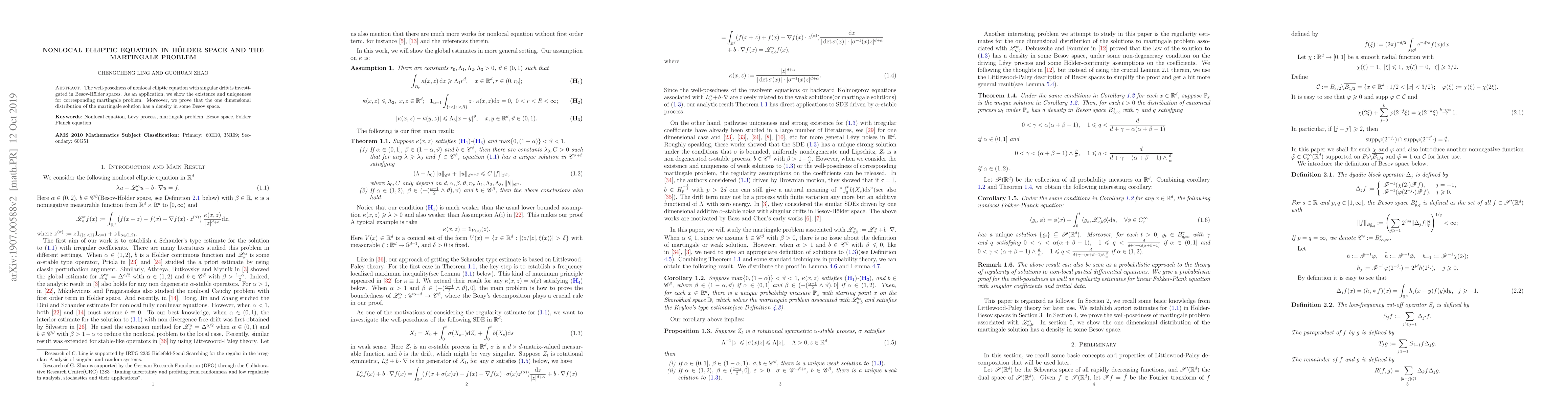 Summary: This paper investigates the well-posedness of nonlocal elliptic equations with singular drift in Besov-Hölder spaces and establishes the existence and uniqueness of solutions to the associated martingale problem, along with the density of the one-dimensional distribution in a Besov space.