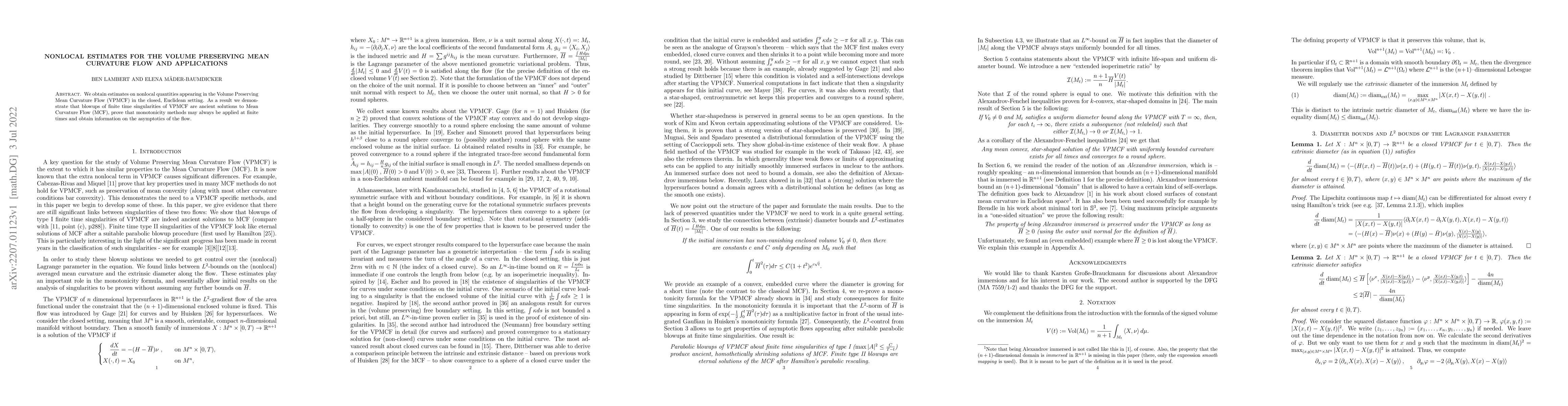 We obtain estimates on nonlocal quantities appearing in the Volume Preserving Mean Curvature Flow (VPMCF) in the closed, Euclidean setting. As a result we demonstrate that blowups of finite time singularities of VPMCF are ancient solutions to Mean Curvature Flow (MCF), prove that monotonicity methods may always be applied at finite times and obtain information on the asymptotics of the flow.