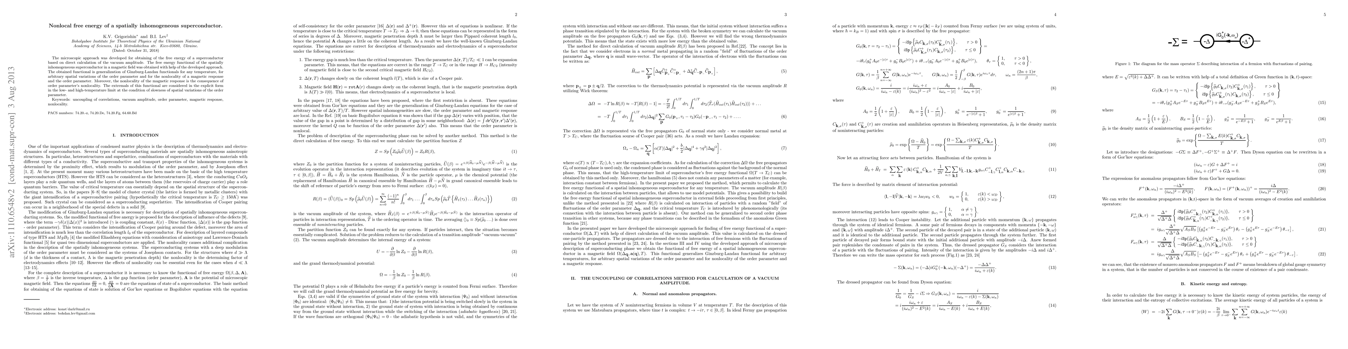 This research paper presents a microscopic method to calculate the free energy of a superconductor in a magnetic field, generalizing Ginzburg-Landau functionals. The approach accounts for any temperature, order parameter variations, and nonlocality of both the order parameter and magnetic response, with the latter resulting from the former's nonlocality. The paper explores extremals of this functional under slow spatial variation conditions in both low-temperature and high-temperature limits.