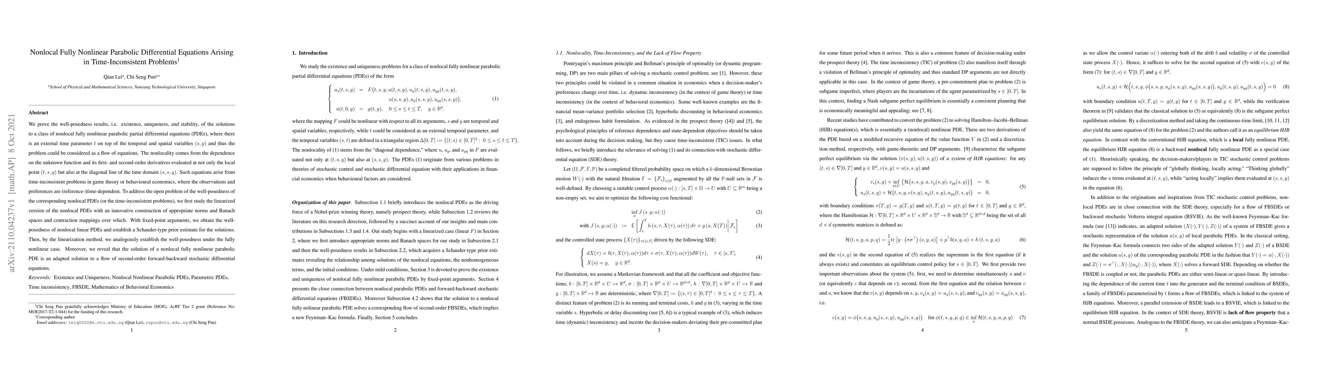 This paper proves the well-posedness of nonlocal fully nonlinear parabolic PDEs arising in time-inconsistent problems, establishing existence, uniqueness, and stability. The nonlocality is due to dependence on derivatives at both local and diagonal points in the time domain, relevant to time-inconsistent problems in game theory and behavioral economics.