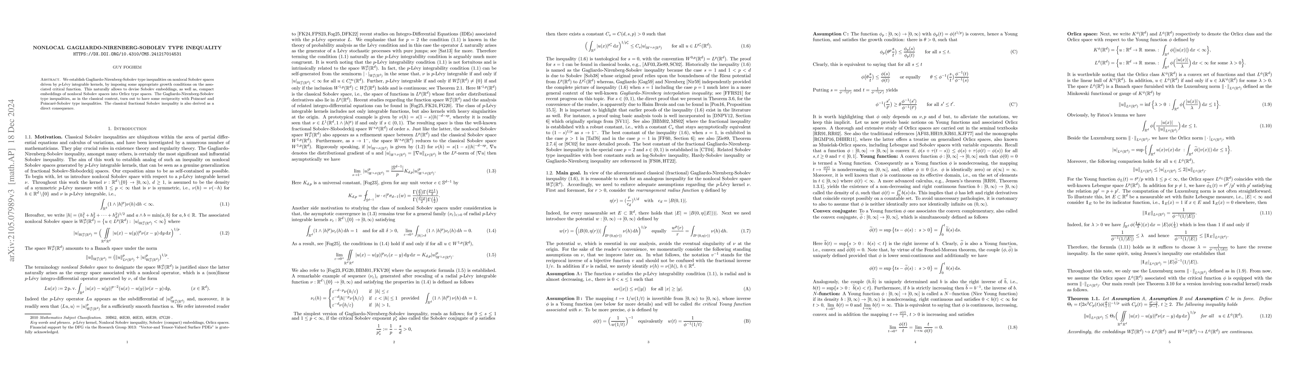 The research establishes Gagliardo-Nirenberg-Sobolev type inequalities on nonlocal Sobolev spaces using p-Lévy integrable functions, imposing growth conditions on the associated critical function, leading to embeddings into Orlicz type spaces.