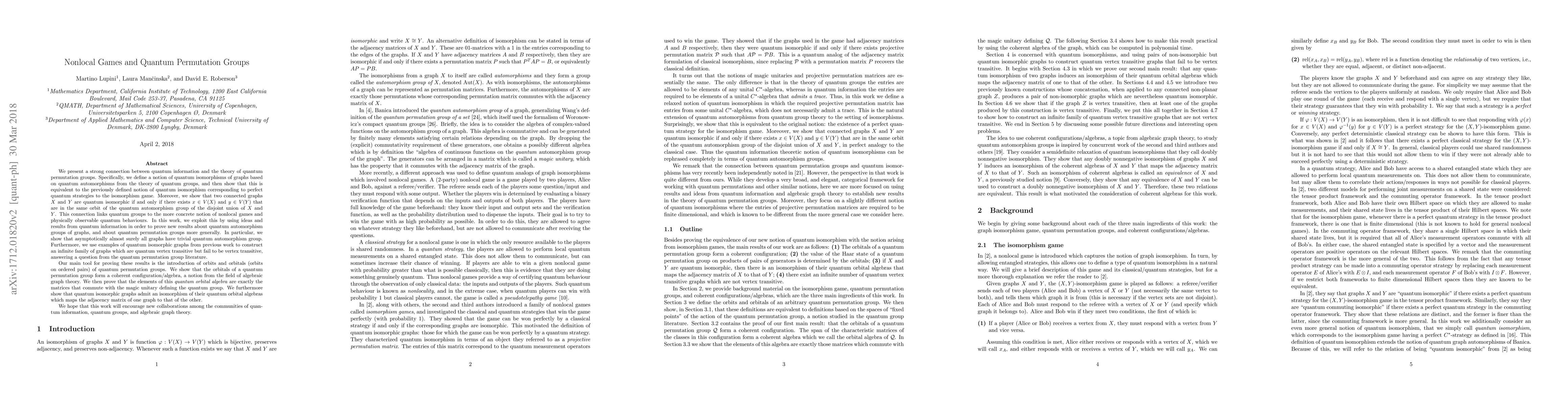 This paper establishes a strong link between quantum information and quantum permutation groups, showing that quantum isomorphisms of graphs correspond to perfect quantum strategies for the isomorphism game. It introduces quantum orbitals to demonstrate that quantum isomorphic graphs share isomorphic quantum orbital algebras, and proves that almost all graphs have trivial quantum automorphism groups.