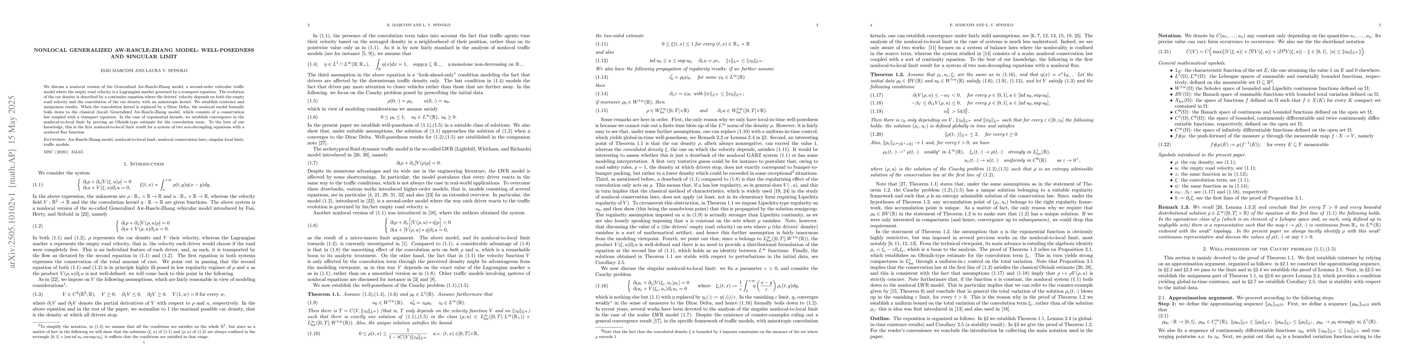 The research methodology involves discussing a nonlocal version of the Generalized Aw-Rascle-Zhang model, a second-order vehicular traffic model. It establishes existence and uniqueness results, and examines the nonlocal-to-local limit with exponential kernels.