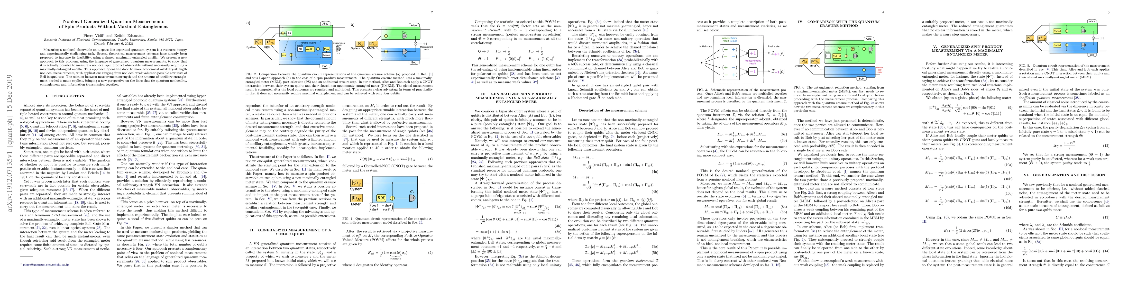 This paper proposes a novel method for nonlocal quantum measurements of spin products without relying on maximally-entangled ancillas, using generalized quantum measurements. This approach facilitates more economical nonlocal measurements, potentially impacting tests of Bell inequalities and the understanding of quantum nonlocality.