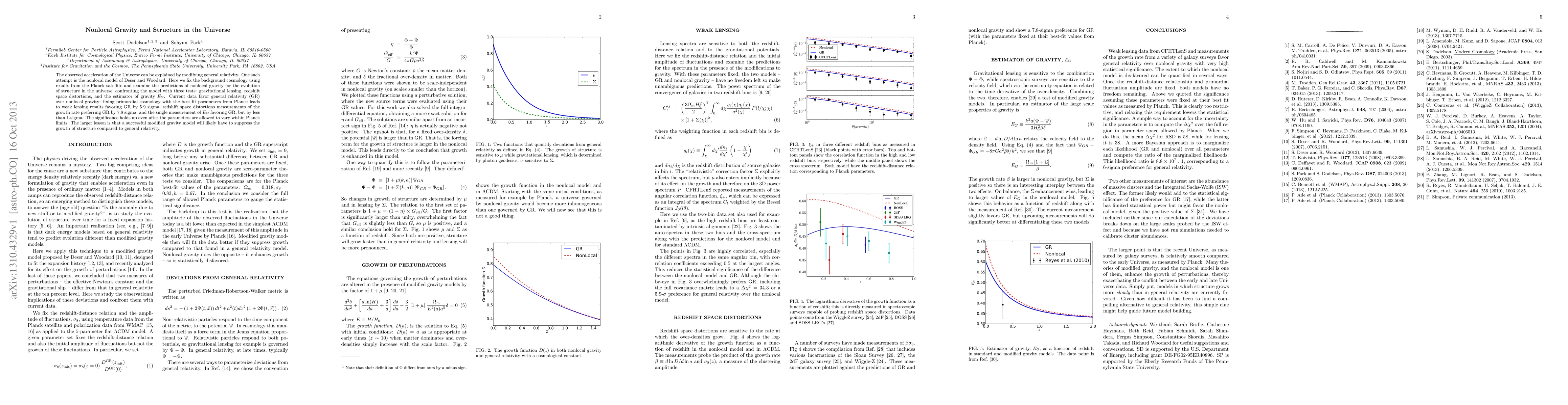 The observed acceleration of the Universe can be explained by modifying general relativity. One such attempt is the nonlocal model of Deser and Woodard. Here we fix the background cosmology using results from the Planck satellite and examine the predictions of nonlocal gravity for the evolution of structure in the universe, confronting the model with three tests: gravitational lensing, redshift space distortions, and the estimator of gravity $E_G$. Current data favor general relativity (GR) over nonlocal gravity: fixing primordial cosmology with the best fit parameters from Planck leads to weak lensing results favoring GR by 5.9 sigma; redshift space distortions measurements of the growth rate preferring GR by 7.8 sigma; and the single measurement of $E_G$ favoring GR, but by less than 1-sigma. The significance holds up even after the parameters are allowed to vary within Planck limits. The larger lesson is that a successful modified gravity model will likely have to suppress the growth of structure compared to general relativity.