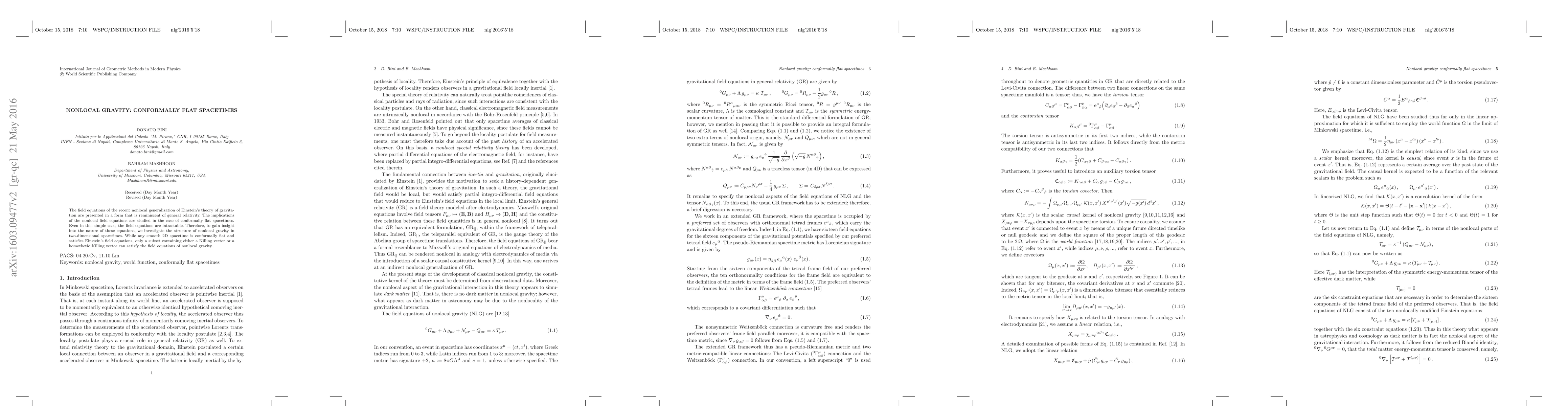 The paper explores the nonlocal generalization of Einstein's theory of gravitation in conformally flat spacetimes, finding that only specific 2D spacetimes with certain symmetries satisfy the nonlocal field equations. Two-dimensional analysis reveals insights into the complexities of nonlocal gravity.