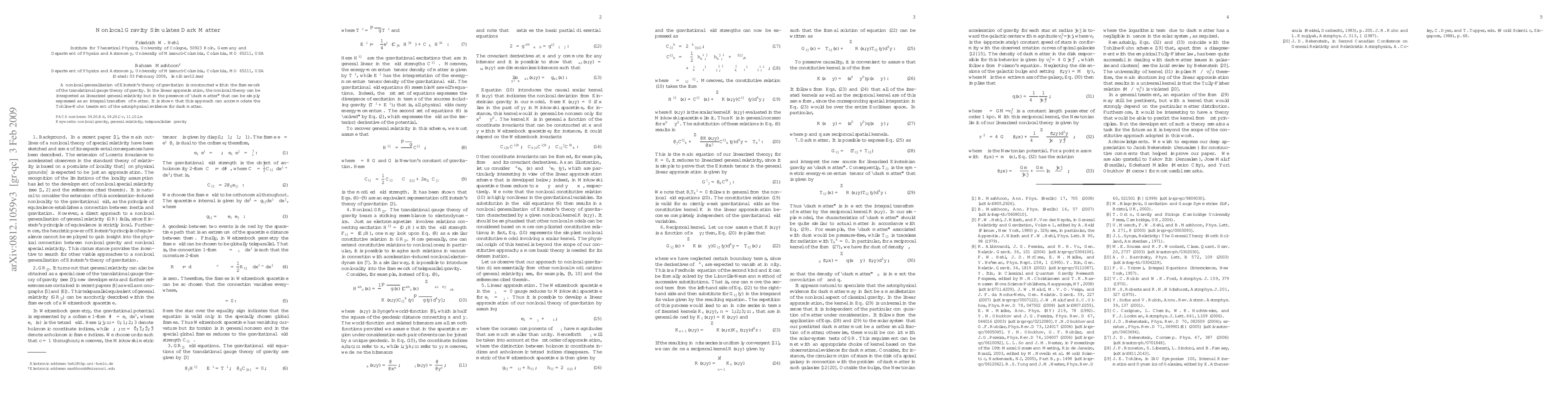 This paper proposes a nonlocal generalization of Einstein's gravity within a translational gauge theory framework, suggesting that it can simulate the effects of dark matter through an integral transform of matter. This approach aligns with the Tohline-Kuhn model of astrophysical evidence for dark matter.
