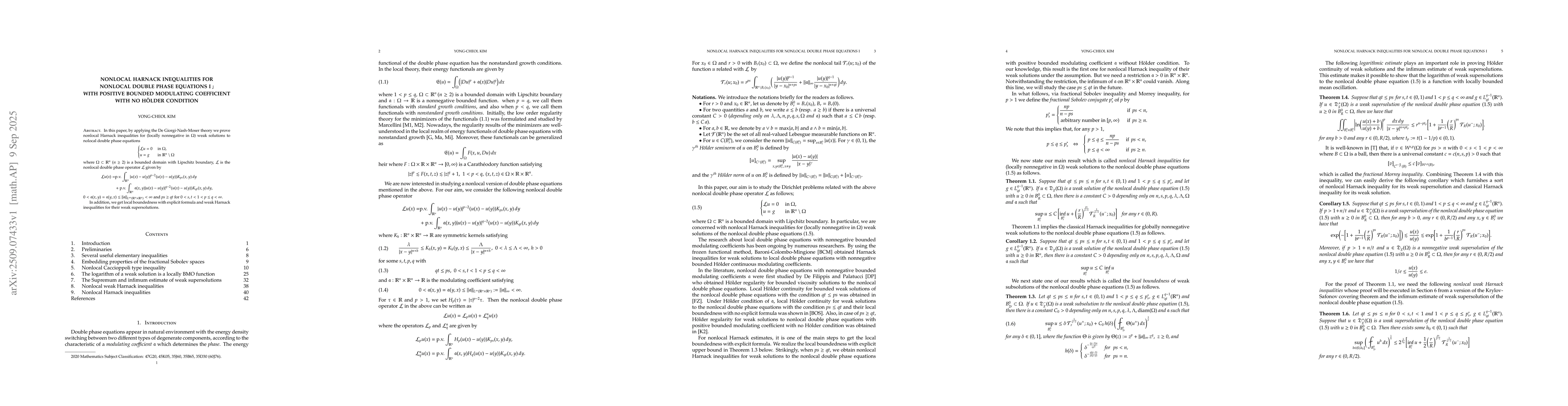 nolocal double phase equations \begin{equation*}\begin{cases}\cL u =0 & \text{