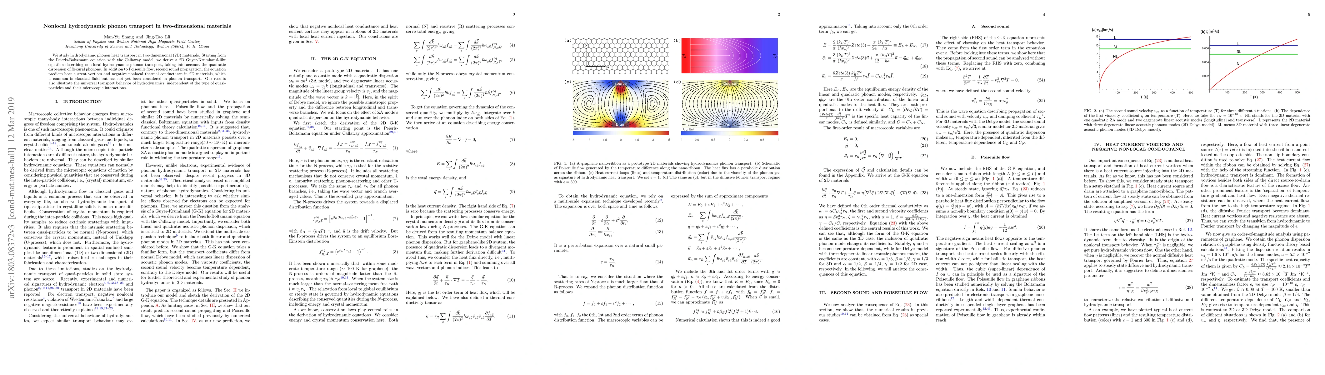 This paper derives a 2D hydrodynamic phonon transport equation based on the Peierls-Boltzmann equation and the Callaway model, revealing phenomena such as heat current vortices and negative thermal conductance, which are analogous to classical fluid dynamics but rarely observed in phonon transport. The findings highlight the universal nature of hydrodynamic transport behavior in 2D materials.