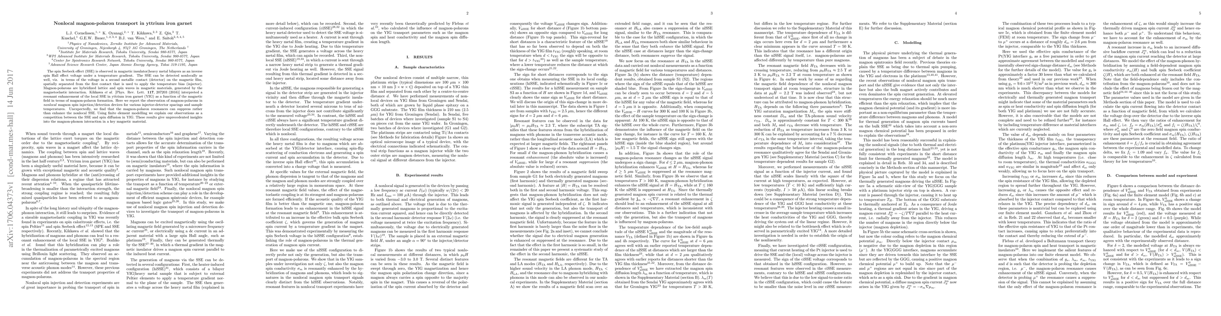 This paper reports the observation of nonlocal magnon-polarons in yttrium iron garnet (YIG) and finds that magnon-polaron resonances can suppress the nonlocal spin Seebeck effect (SSE), contrary to previous expectations. The study uses finite element modeling to explain the observed suppression as a competition between SSE and spin diffusion in YIG.