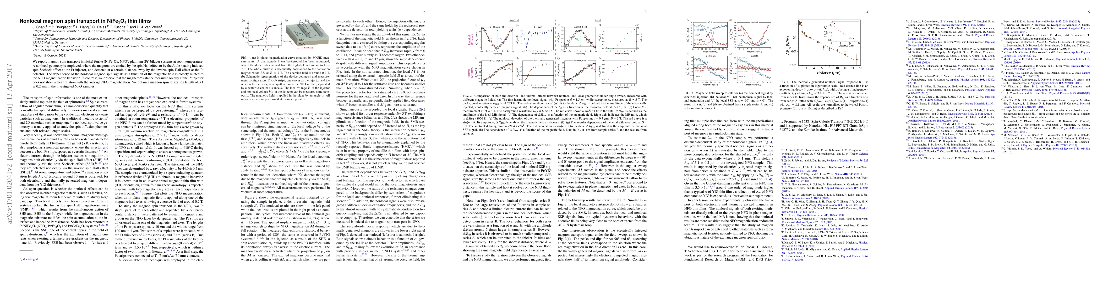 This study investigates magnon spin transport in NiFe$_2$O$_4$ thin films using a nonlocal geometry, revealing a significant relationship between magnon signals and NFO magnetization, while local magnetoresistance at the Pt injector does not correlate with NFO magnetization, estimating a magnon spin relaxation length of 3.1 $\pm$ 0.2 $\mu$m.