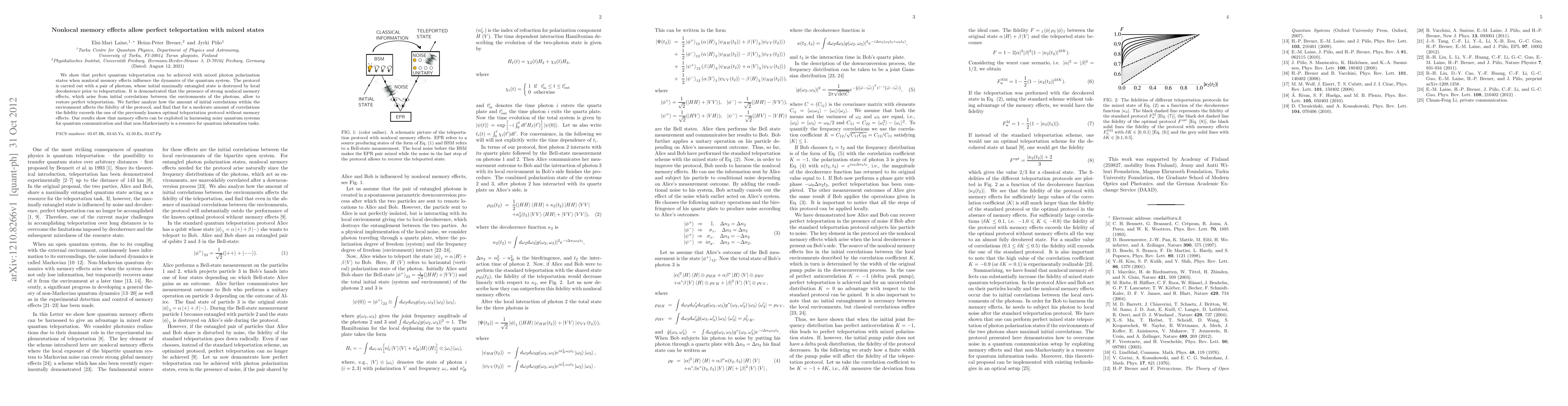 We show that perfect quantum teleportation can be achieved with mixed photon polarization states when nonlocal memory effects influence the dynamics of the quantum system. The protocol is carried out with a pair of photons, whose initial maximally entangled state is destroyed by local decoherence prior to teleportation. It is demonstrated that the presence of strong nonlocal memory effects, which arise from initial correlations between the environments of the photons, allow to restore perfect teleportation. We further analyze how the amount of initial correlations within the environment affects the fidelity of the protocol, and find that for a moderate amount of correlations the fidelity exceeds the one of the previously known optimal teleportation protocol without memory effects. Our results show that memory effects can be exploited in harnessing noisy quantum systems for quantum communication and that non-Markovianity is a resource for quantum information tasks.