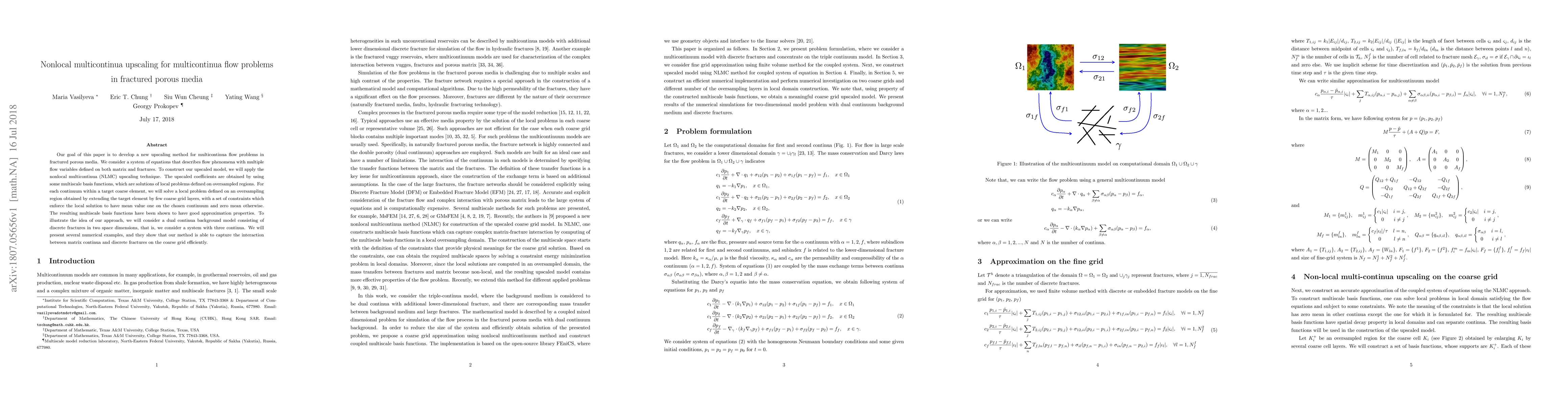 This paper develops a nonlocal multicontinua upscaling method for multiphase flow in fractured porous media, employing multiscale basis functions to capture interactions between matrix and fracture continua. Numerical examples demonstrate the effectiveness of the method in efficiently representing flow phenomena across different continua.