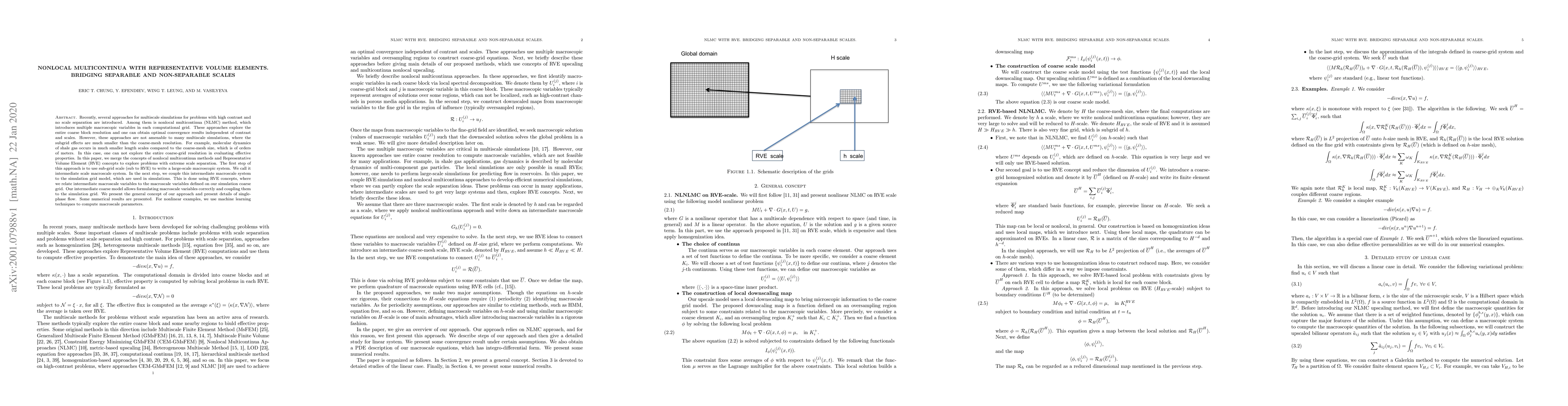 Recently, several approaches for multiscale simulations for problems with high contrast and no scale separation are introduced. Among them is the nonlocal multicontinua (NLMC) method, which introduces multiple macroscopic variables in each computational grid. These approaches explore the entire coarse block resolution and one can obtain optimal convergence results independent of contrast and scales. However, these approaches are not amenable to many multiscale simulations, where the subgrid effects are much smaller than the coarse-mesh resolution. For example, the molecular dynamics of shale gas occurs in much smaller length scales compared to the coarse-mesh size, which is of orders of meters. In this case, one can not explore the entire coarse-grid resolution in evaluating effective properties. In this paper, we merge the concepts of nonlocal multicontinua methods and Representative Volume Element (RVE) concepts to explore problems with extreme scale separation. The first step of this approach is to use sub-grid scale (sub to RVE) to write a large-scale macroscopic system. We call it intermediate scale macroscale system. In the next step, we couple this intermediate macroscale system to the simulation grid model, which are used in simulations. This is done using RVE concepts, where we relate intermediate macroscale variables to the macroscale variables defined on our simulation coarse grid. Our intermediate coarse model allows formulating macroscale variables correctly and coupling them to the simulation grid. We present the general concept of our approach and present details of single-phase flow. Some numerical results are presented. For nonlinear examples, we use machine learning techniques to compute macroscale parameters.