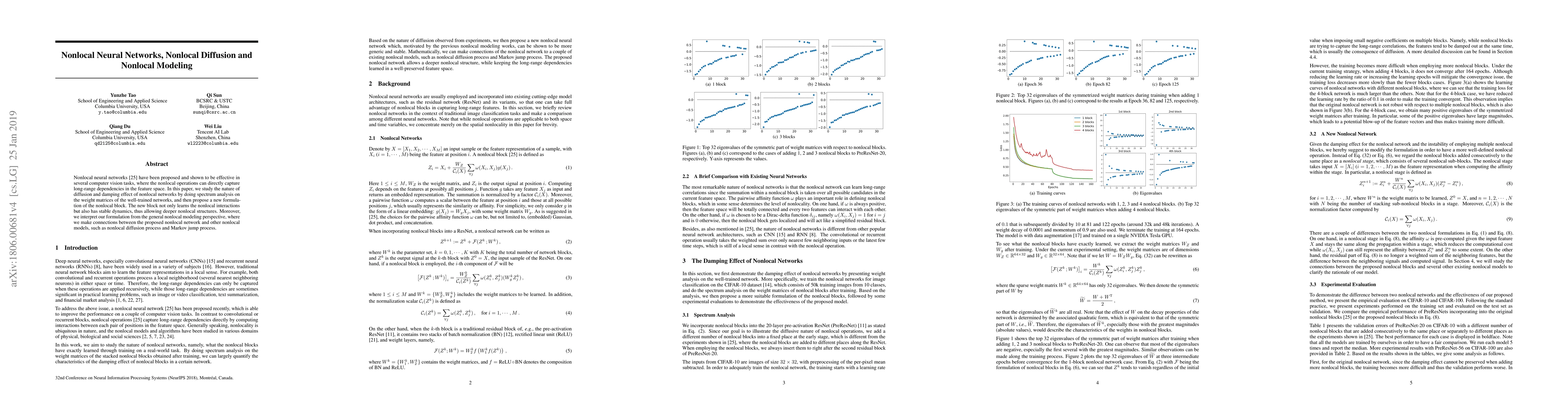 This paper investigates the diffusion and damping effects in nonlocal neural networks through spectrum analysis, proposing a new nonlocal block that enhances stability and deeper network structures. It also connects the new formulation to broader nonlocal modeling, linking it to nonlocal diffusion and Markov jump processes.