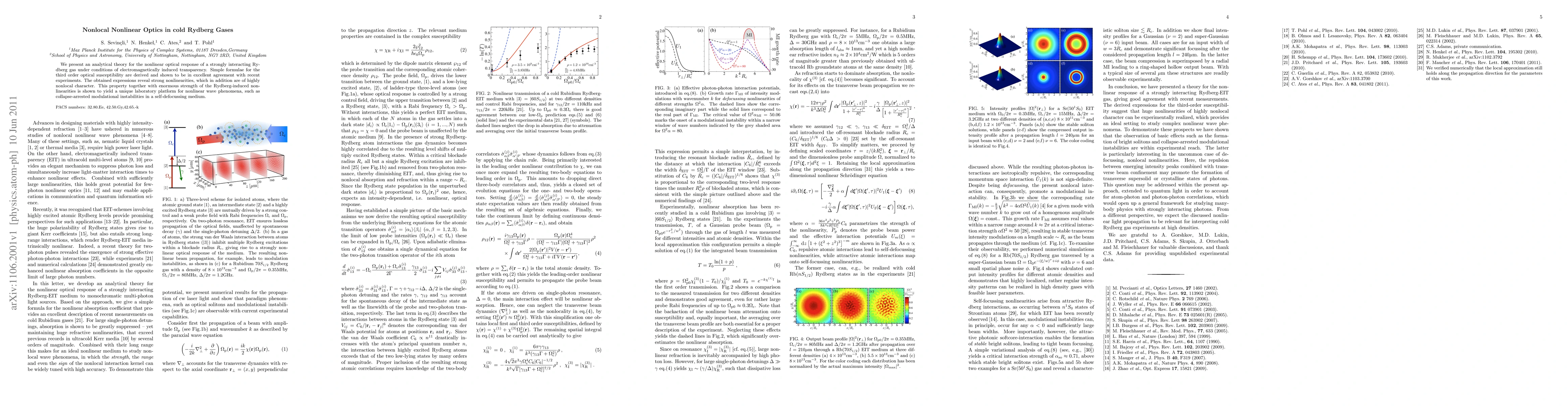 This paper develops an analytical theory for the nonlinear optical response of a cold Rydberg gas under electromagnetically induced transparency, revealing strong, nonlocal nonlinearities that provide a unique platform for studying nonlinear wave phenomena like collapse-arrested modulational instabilities. The derived third-order optical susceptibility formulae align well with recent experimental results.