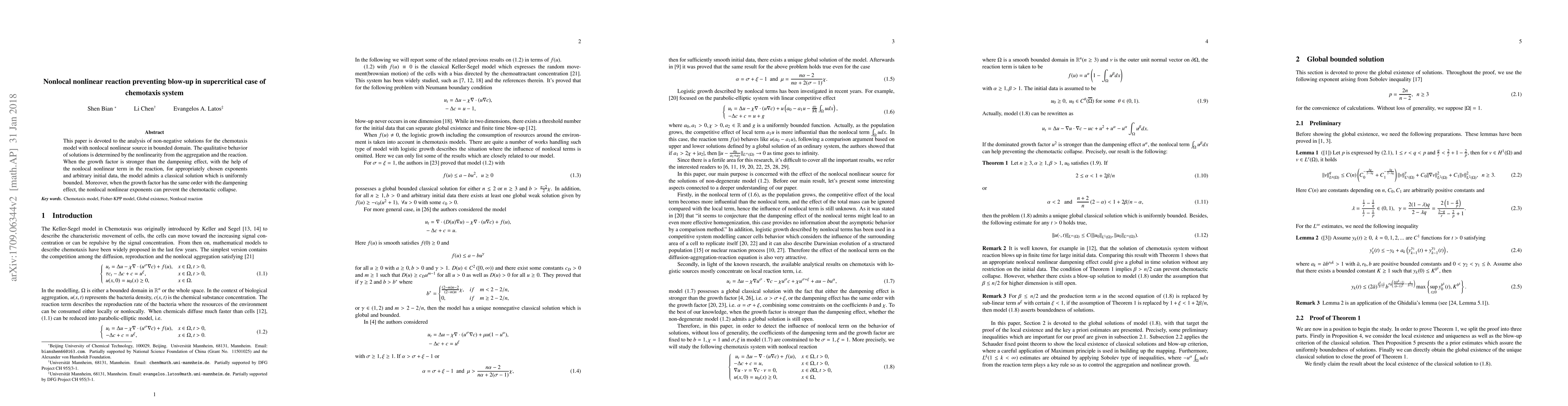 Researchers found that adding a nonlocal nonlinear reaction to a chemotaxis model helps prevent blow-up and ensures the global existence of solutions with arbitrary initial data.
