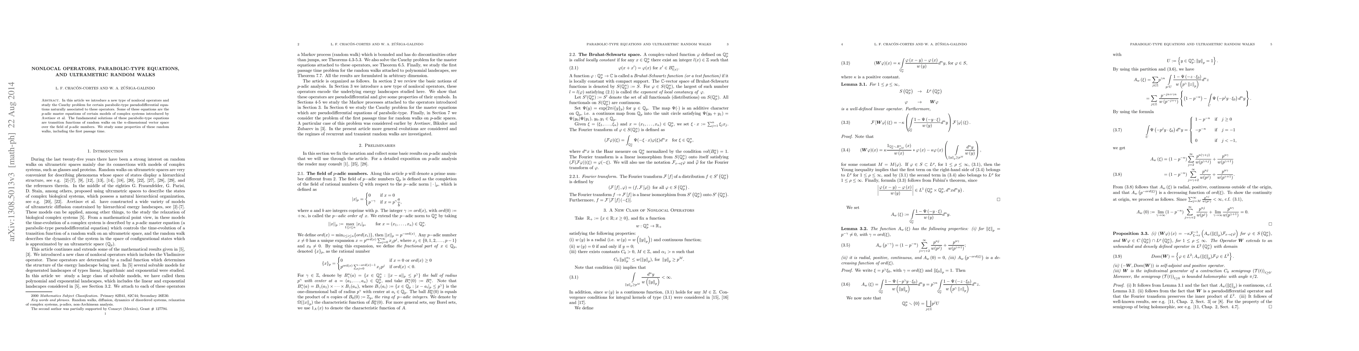 In this article we introduce a new type of nonlocal operators and study the Cauchy problem for certain parabolic-type pseudodifferential equations naturally associated to these operators. Some of these equations are the p-adic master equations of certain models of complex systems introduced by Avetisov et al. The fundamental solutions of these parabolic-type equations are transition functions of random walks on the n-dimensional vector space over the field of p-adic numbers. We study some properties of these random walks, including the first passage time.